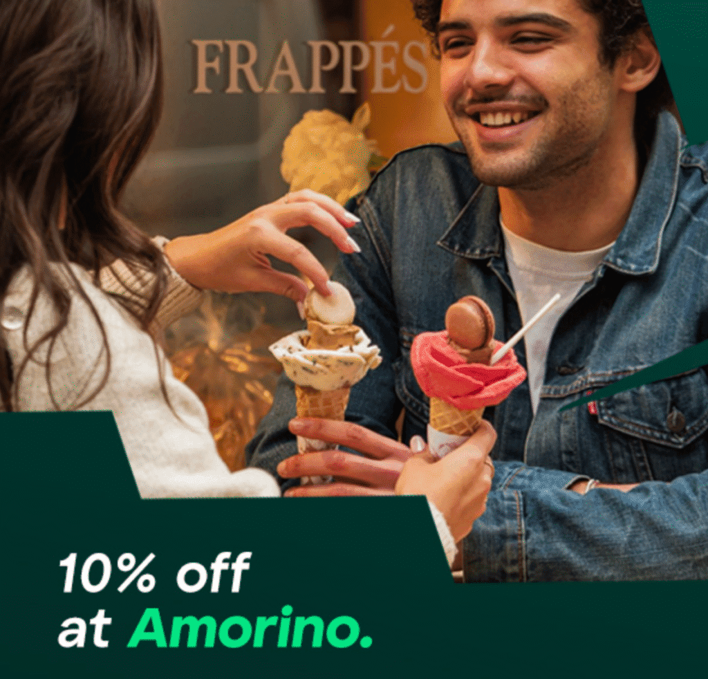 Every scoop here is shaped into a rose, and you can pile on as many flavours as you like. Add a crepe or waffle if you like – and it’s all 10% off with DineOut.