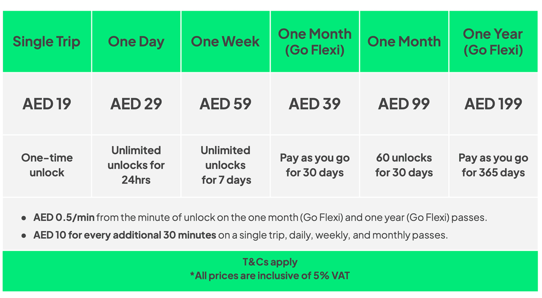 One-Month and One-Year (Go Flexi) Passes: These are ideal for frequent riders who want unlimited rides with pay-as-you-go pricing