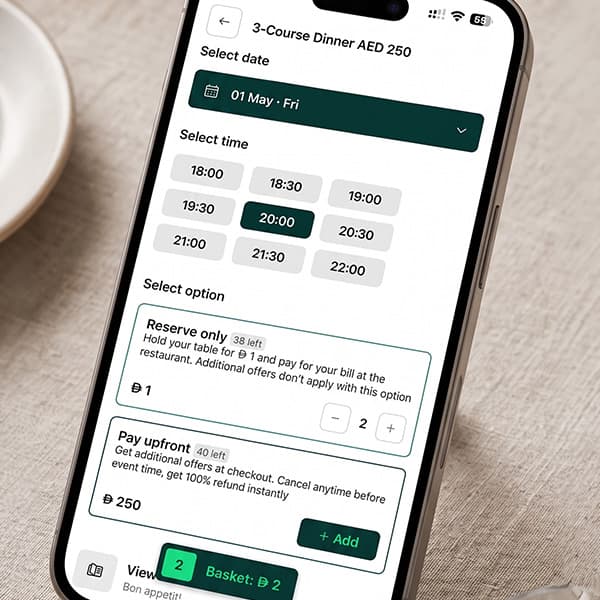 - Reserve Only (AED 1 per person): This is ideal if you want to lock in a table but prefer to pay the bill at the restaurant. For a tiny deposit of just AED 1, your reservation is held, ensuring you don’t miss out during the busy festival weeks. This amount is automatically sent back to your original payment method after your booking time. Please note that bank discounts are not applicable to this option.